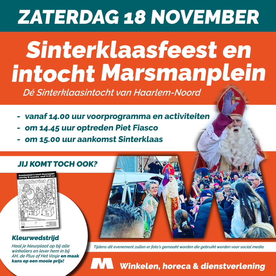 Sinterklaasfeest Marsmanplein zaterdag 15 november 2025